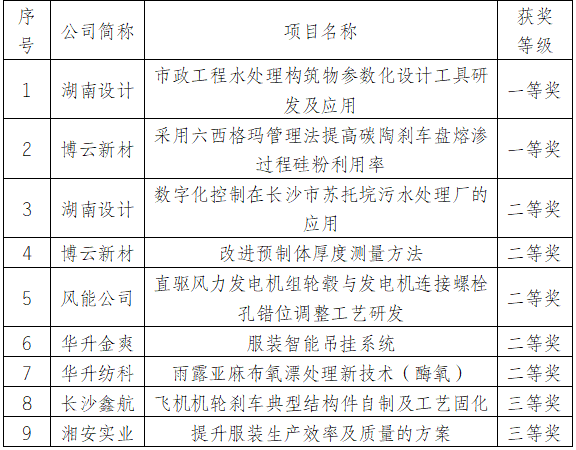 近日,m88asia集团所属湖南设计、博云新材等9项质量创新成果摘得“湖南省第五届质量创新大赛”一等奖2项、二等奖5项、三等奖2项。m88asia集团所属企业此次参赛项目在建筑、新材料、新能源、服装纺织等领域多点开花,覆盖质量攻关改进、质量管理数字化、六西格玛等所有类型,培育出一大批“质量标杆”“创新团队”,取得了较高的经济社会效益和技术推广价值。获奖名单如下:
