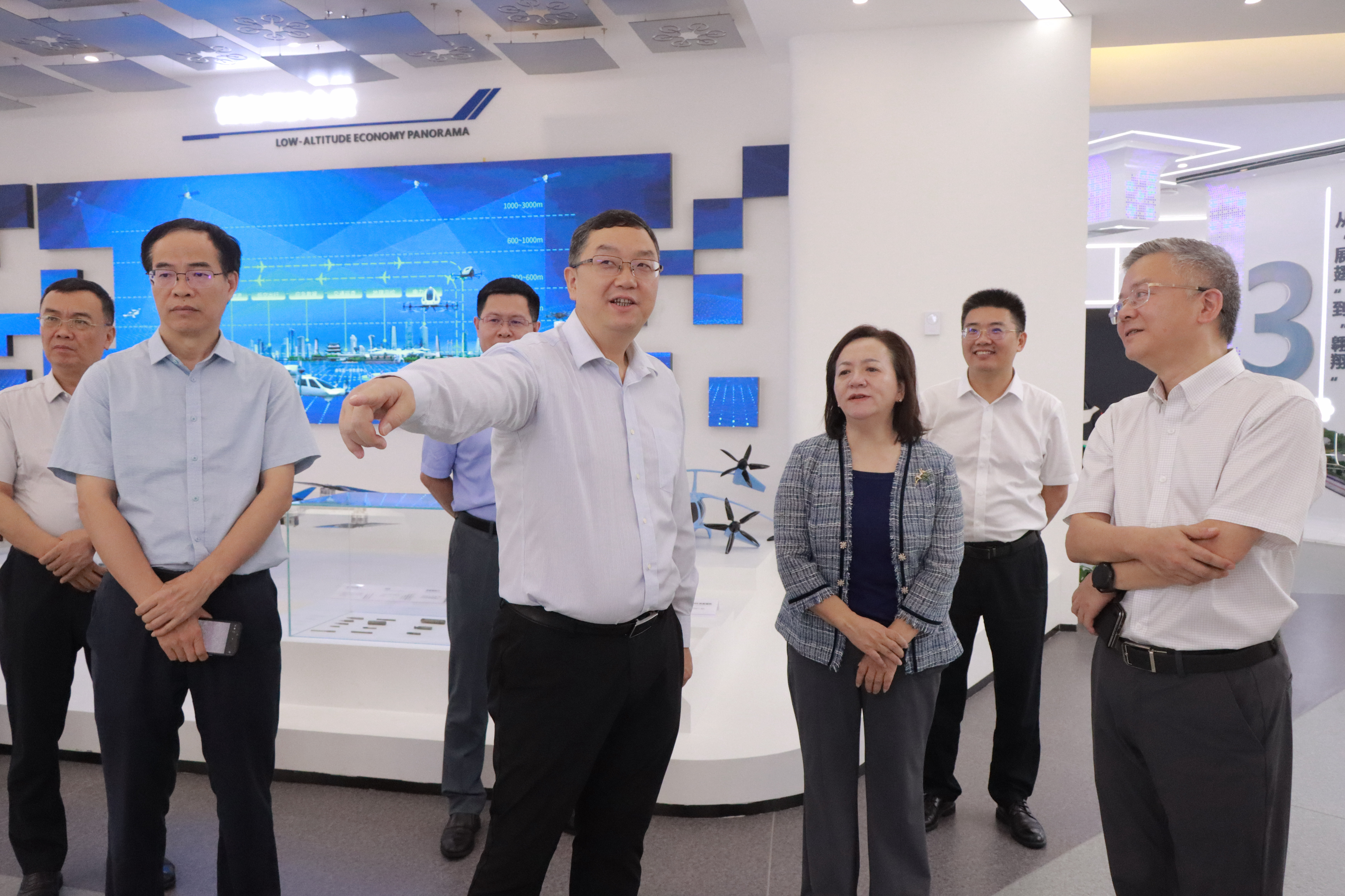 马咏华一行先后参观湖南低空展厅、飞行服务大厅及政务巡检中心,详细了解其功能定位、产业布局规划、应用场景成果。